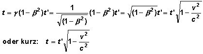 Es fehlt noch die B-Zeit t. Dazu benutzen wir wieder eine Gleichung der Lorentztransformation: