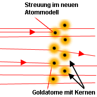 Im neuen Rutherfordschen-Atommodell konnte die Ablenkung der Alphateilchen, wie in der Abbildung rechts dargestellt, erklärt werden.