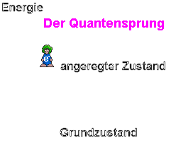 Ein Quantensprung findet aber nicht nur bei der Aufnahme von Energieportionen statt sondern auch bei der Abgabe. Das angeregte Quecksilberatom wird nämlich